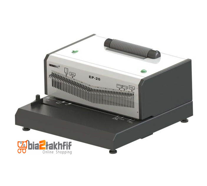 دستگاه صحافی فنر مارپیچ برقی EP-20 قابلیت هربار پانچ 20 برگه 80 گرمی را دارد.ظرفیت این دستگاه صحافی 500 برگ میباشد.