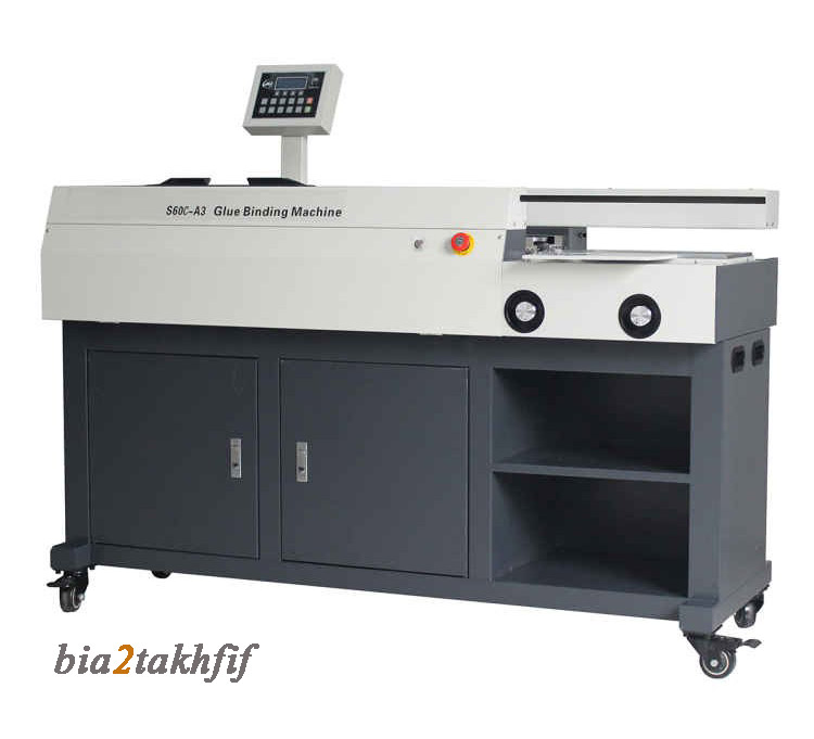 دستگاه چسب گرم صنعتی AX S60C-A3 از نحوه ی چسب زنی خورشیدی و خط زن عطف جلد بهره میبرد.این دستگاه در کمتر از 35 دقیقه گرم میشود و سرعت آن برابر 200 الی 400 کتاب است که قابلیت کار کردن تا ضخامت 60 میلی متر را دارد.