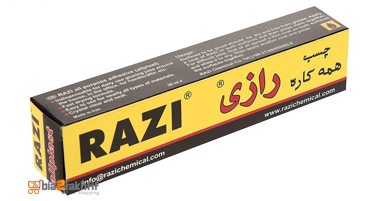 چسب ابزاری بسیار پرکاربرد است که انواع گوناگونی دارد. در میان انواع مختلف چسب، یکی از پرکاربردترین آنها چسب همهکاره است. این مدل چسب جهت اتصال انواع مواد مورد استفاده قرار میگیرد. چسب همهکاره به کاربرد سریع و آسان معروف است. این مزیت باعث میشود تا این محصول نسبت به سایر چسبها متمایز شود. چسب همه کاره «رازی» نمونهای از این چسبهاست که با مدل (Allplast) به بازار عرضه شده است. حجم این محصول 50 میلیلیتر بوده و از آن جهت اتصال انواع قطعات چوبی چرم، پارچه، کاغذ و مقوا و غیره استفاده کرد. چسب رازی حاوی مایعی شفاف بوده و دارای بدنه پلاستیکی انعطا فپذیر است. خاصیت انعطافپذیری باعث میشود تا در اثر فشار آوردن به بدنه چسب، آسیبی به بدنه وارد نشود و مایع چسب از آن خارج نشود. از ویژگیهای این چسب میتوان به سرعت خشکشدن بالای آن اشاره کرد. این چسب میتواند انتخاب مناسبی برای اتصال انواع مواد و قطعات باشد.