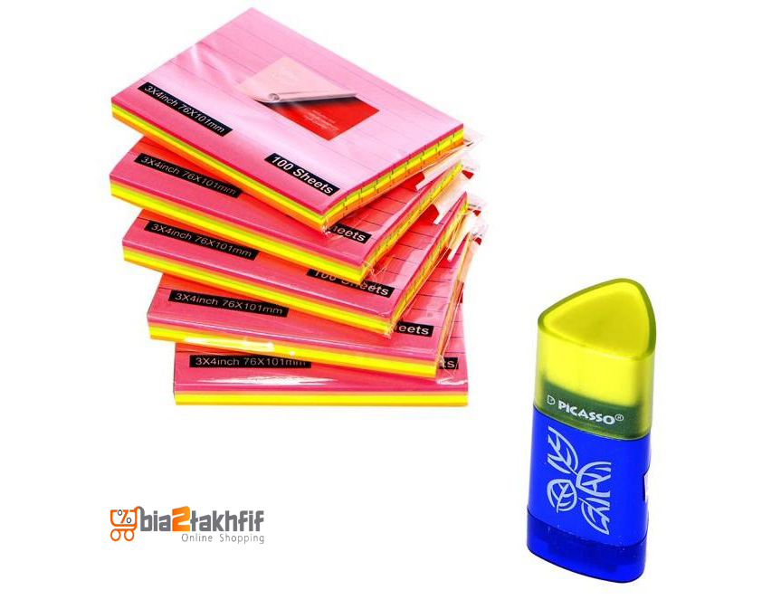 کاغذ یادداشت چسب دار بسته 5 عددی به همراه پاکن تراش پیکاسو