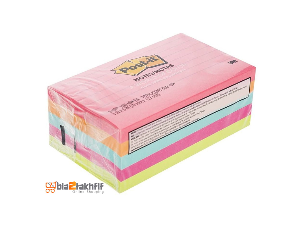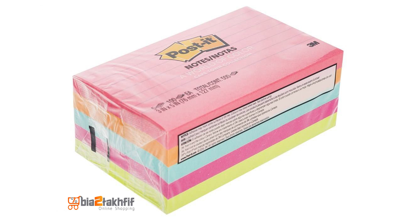 کاغذ یادداشت چسب دار پست ایت بسته 500 عددی رنگبندی مختلفی دارد. این محصول دارای ابعاد 127 × 76 میلی متر است :