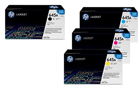 تونرهای HP برای استفاده در پرینترهای لیزری HP طراحیشدهاند و نباید از برندهای متفرقه در پرینترهای HP استفاده کرد. همچنین این تونرها برای استفاده در پرینترهای مشابه از برندهای دیگر مناسب نیستند. لذا الزامی است به هنگام تعویض تونر پرینتر خود دقت کافی را داشته باشید. تونرهای اصلی HP برای پرینترهای لیزری رنگی HP، رنگهای واقعی تولید میکنند و کیفیت مناسبی دارند. چاپ عکس، متون و اشکال گرافیکی با بهترین کیفیت و بهترین شکل انجام میگیرد. کیت کارتریج تونر لیزری 645A اچ پی قادر است تا 13000 صفحه را چاپ کند. این تونر را میتوانید در پرینتر HP LaserJet 5500 5550 استفاده کنید.