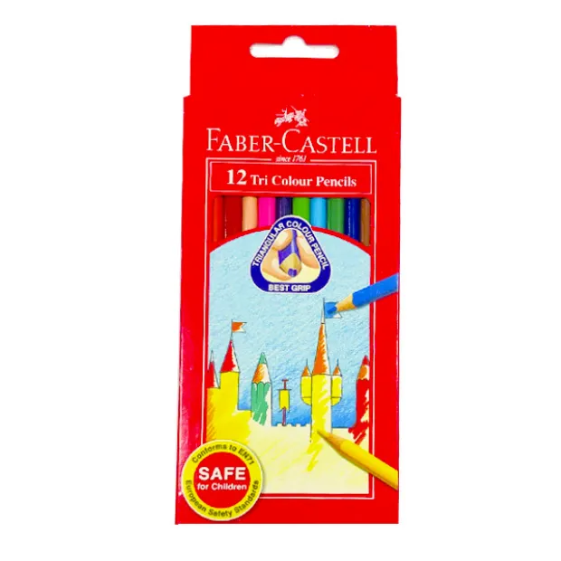 مداد رنگی فابرکاستل مجموعه 12 عددی، در بسته بندی مقوایی قرار گرفته است.از ویژگی های بارز این مداد رنگی ها می توان به نوک بسیار مقاوم در برابر شکستن، مقاوم در برابر نور و کمرنگ شدن، ضد آب ،رنگ پایه روغنی و پوششی ازبهترین چوبهای سرو اشاره کرد.این بسته مداد رنگی با فرم سطح مقطع مثلثی شکل بهترین انتخاب برای کودکانتان میتواند باشد.