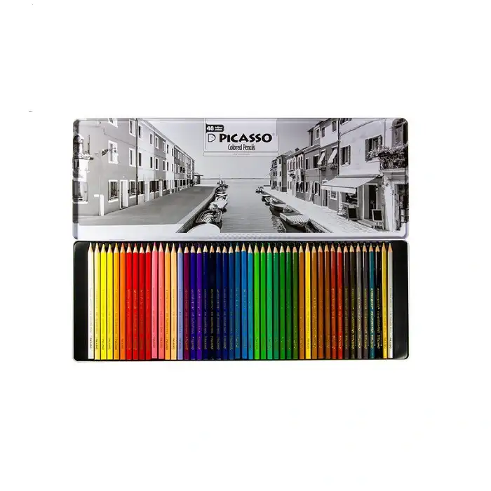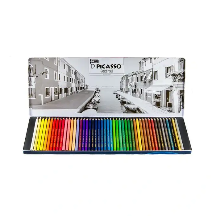 یکی از لوازم رنگ امیزی جذاب و محبوب هم برای کودکان و هم بزرگسالان مداد رنگی است. مداد رنگی 48 رنگ پیکاسو مدل Superb Writer طرح ونیز دارای جعبه فلزی زیبا و مقاومی است و تمامی مدادها خوش رنگ و مرغوب و باکیفیت هستند و مغزی آنها نرم و پررنگ می باشد.