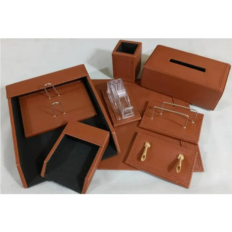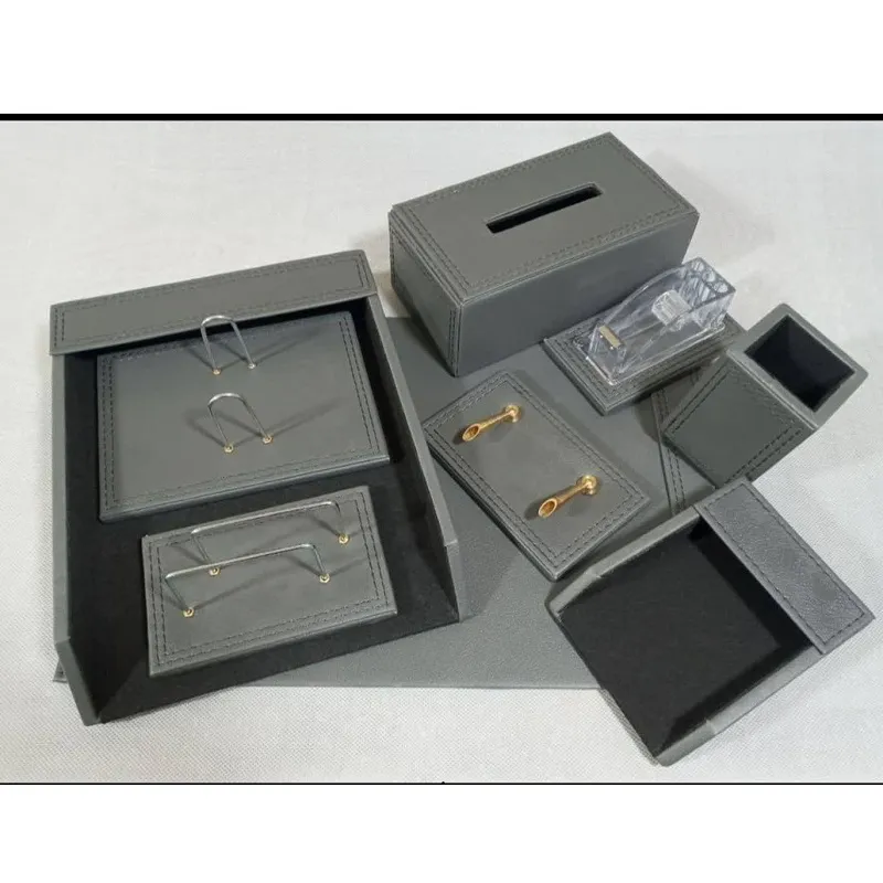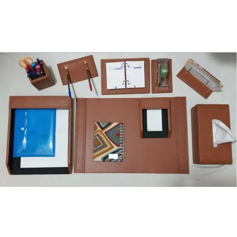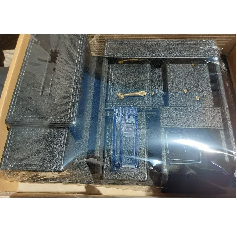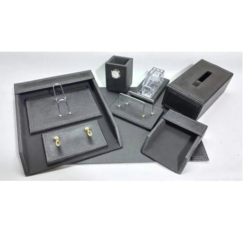 ست رومیزی اداری مدیریتی 9 تکه بعنوان یک هدیه لوکس در راستای آراستگی میز کار و تکمیل کننده آن، می تواند سورپرایزی ویژه برای مدیران یا کارفرمایان یا دوستداران شما باشد و باعث ماندگاری و اعتلای کسب و کار مدیران در دید همیشگی و روزانه مخاطبان در کلاس تجارت بین المللی می شود.