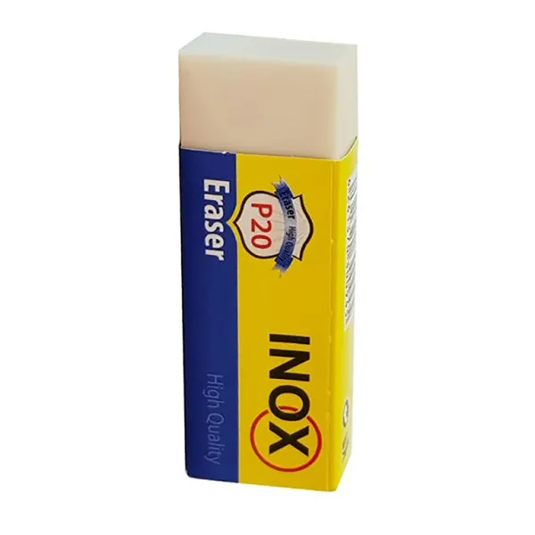پاک کن اینوکس Inox ،این پاک‌کن محصولی از شرکت اینوکس بوده که به صورت جامد میباشد .ابعاد این محصول ۱۰*۲۰*۴۰ میلی‌متر میباشد. میزان براده‌ی ایجاد شده در هنگام استفاده از پاک‌کن، در این محصول به حداقل رسیده است. به‌علاوه به منظور راحتی بیش‌تر مصرف کننده، یک پوشش مقوایی متحرک هم در اطراف پاک‌کن قرار گرفته است.