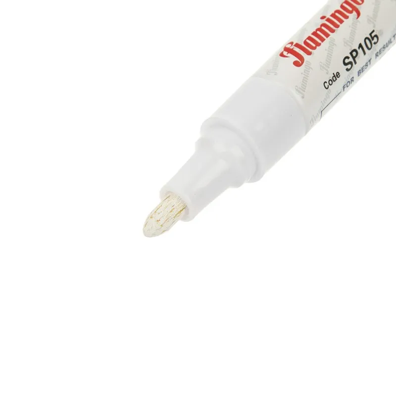 ماژیک آهن ضد آب متال فلامینگو ،جنس بدنه از پلاستیک است و نوک ماژیک از جنس نمد با قطر نوشتاری 52 میلی متر است . نوک این ماژیک گرد است و خط نوشتاری شما را زیباتر نشان میدهد .این ماژیک بر پایه تینر و رنگ روغن است که قابلیت نوشت بر روی فلزات را دارد. این جوهر پاک نشو است و روی اجسامی مانند شیشه، انواع فلزات ، و دیگر سطوح قابل نوشتن است.