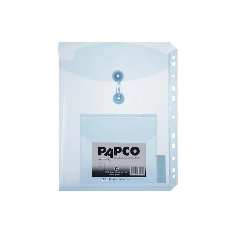 پاکت آفیس پاپکو کد A4-11-120 ،یکی از پرکاربردترین انواع پاکت نامه برند پاپکو است .این پاکت ها با 11 عدد پانچ مناسب برای بایگانی کلاسور و یا زونکن می باشد.پاکت نامه آفیس در پنج رنگ متنوع در بازار موجود هستند.