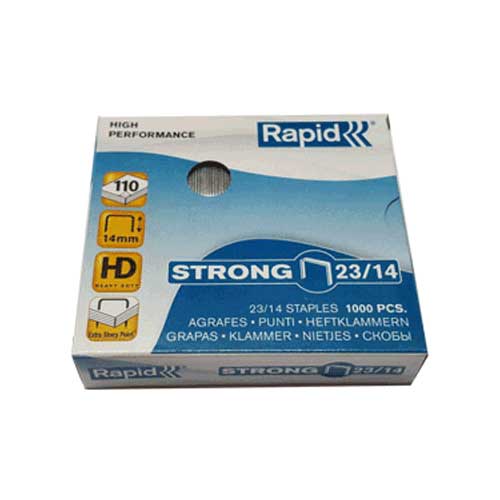سوزن منگنه راپید سایز 23/14، برای استفاده در دستگاه منگنه راپید مدل «HD110» می باشد. که مخصوص این ماشین دوخت است. و در هر بسته تعداد دو کارتریج با 1000 عدد سوزن قرار گرفته است.