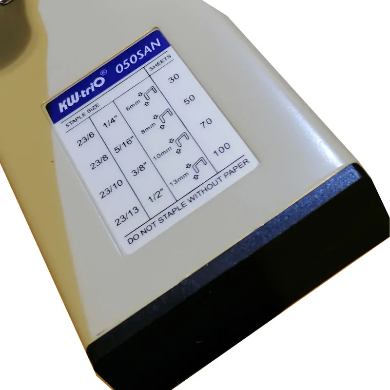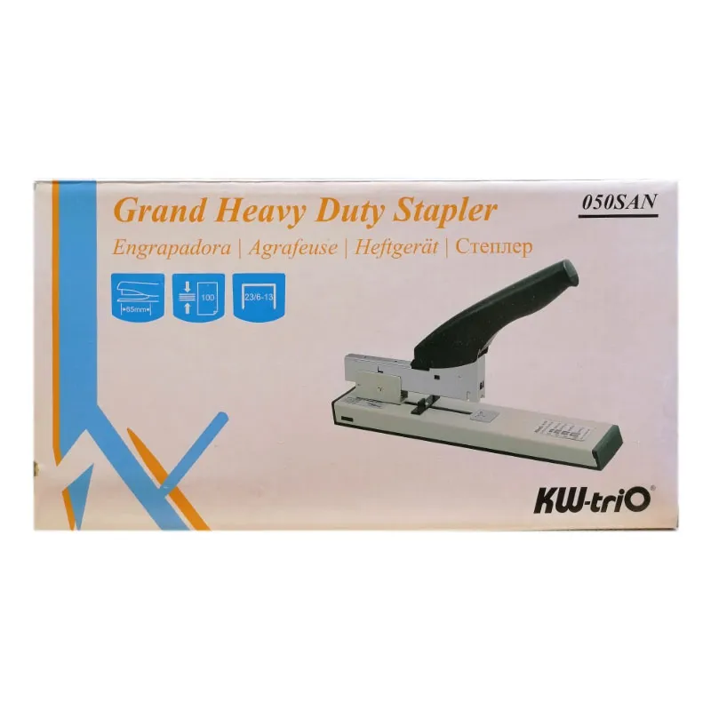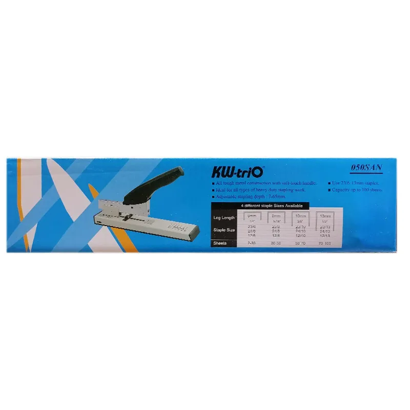 منگنه کی دبلیو تریو کد 050SAN، یکی از تولیدات برند کی دبلیو تریو می باشد.منگنه (050SAN) در ابعاد (280x190x67) میلی متر و جنس بدنه فلزی تولید شده است.از مهم ترین مزیت این منگنه قابلیت زدن منگنه در لبه کاغذ یا کتاب از 7 میلی متر تا عمق 7 سانتی متر است .